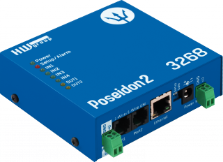 HW Group Poseidon2 3268 er en avanceret miljøovervågningsenhed designet til IT- og industrielle applikationer. Den understøtter op til 8 eksterne sensorer via 1-Wire UNI, har 4 digitale indgange, 2 relæudgange og tilbyder alarmering via e-mail, SNMP-trap eller SMS (via ekstern gateway). Enheden kan tilsluttes via Ethernet og understøtter PoE.