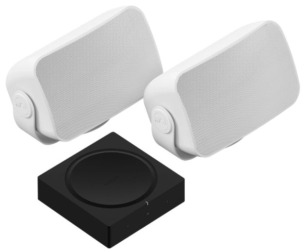 Sonos Amp Outdoor by Sonance – vejrbestandige udendørshøjttalere i sort (2-pak). Kraftfuld trådløs lyd, Wi-Fi, AirPlay 2 og fuld Sonos-integration. Ideel til terrasse, have og poolområde.