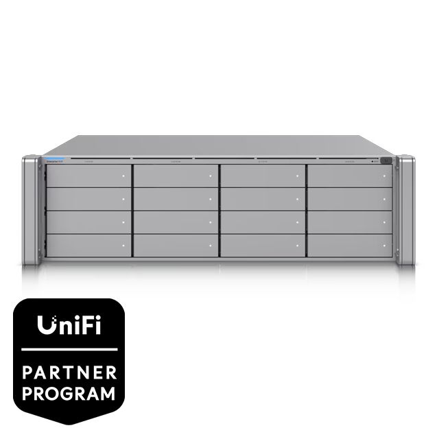 ENVR er en professionel network video recorder (NVR) fra Ubiquiti, målrettet krævende overvågningsmiljøer såsom større virksomheder, campusser eller multi-bygninger. Den er designet som en 3U rack-monteringsenhed med plads til 16 drive-båse (2,5″/3,5″ HDD/SSD), hvilket giver fleksibel og skalerbar lagring.